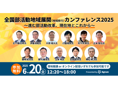 スポーツテック企業の株式会社ユーフォリア(本社:東京都千代田区、代表取締役:橋口 寛/宮田 誠、以下 ユーフォリア)は、2025年6月20日(金)に『全国部活動地域展開(地域移行)カンファレンス 2025』を開催することをお知らせいたします。本カンファレンスは、部活動の地域展開(地域移行)をテーマに、全国各地で進められる事例をご紹介しながら、現在起きている課題や対応策について、有識者の皆さまと共有し合う場となります。