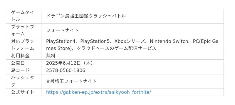 「最強王図鑑の日」である6月12日に「最強王図鑑」シリーズ10周年を記念した「ドラゴン最強王図鑑クラッシュバトル」をフォートナイト内で公開
