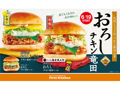 ウェンディーズ・ジャパン株式会社及び、ファーストキッチン株式会社 (所在地:東京都新宿区、代表取締役:紫関修) では、6月19日(木)からファーストキッチン(競馬場店を除く)にて、九州しょうゆ“ニビシ醬油”を使用した、味わい深いおろし竜田バーガー3品を新発売します。すだちがさわやかに香るおろしソースを使用した商品は、2020年7月の発売以来、ファーストキッチンの夏の風物詩として大変好評いただいております。今年は「皮ごと食べられるスライスレモン」でよりさっぱり仕立てた「クラシックおろしレモンチキン竜田バーガー」や、辛い物好きにはたまらない「クラシックおろし七味竜田バーガー」など、ひと手間をかけた季節限定商品が登場します。ぜひ、さっぱり・さわやかな和の旨味をお楽しみください。