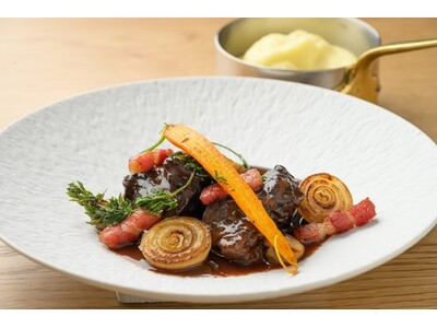 ポーチドエッグのムーレット、牛の赤ワイン煮込みは、ソーリューのラ・コート・ドールがブルゴーニュの風を運ぶ。