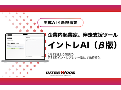 イントレプレナー(企業内起業家)向け、生成AI搭載の“実践型AI伴走支援”システム「イントレAI(β版)」を開発。2025年6月13日開講の第31期イントレプレナー塾参加者限定で先行導入。