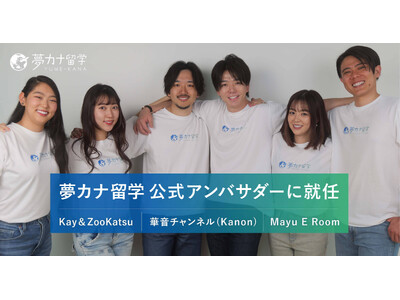 【総SNSフォロワー数150万超】海外生活のリアルと使える英語を届ける人気YouTuber3組が“夢カナ留学の公式アンバサダー”に就任!メンバーに「会って話せる」特典付きの留学プランを受付スタート!
