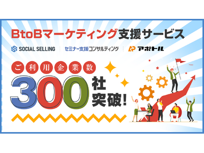 株式会社ウィルゲート(本社:東京都港区、代表取締役:小島 梨揮、以下 ウィルゲート)は、BtoBマーケティング支援サービスの導入社数が累計300社を突破したことをお知らせします。SNSを活用したソーシャルセリング支援やオンラインセミナー支援、企業データベース「アポトル」などを活用し、広告費ゼロで商談を生み出す仕組みづくりを支援しています。