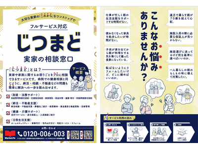 当社では、実家に関するお困りごとをワンストップで解決するサービス「じつまど」 を展開しております。 「実家」にまつわるお悩みごとを丁寧にヒアリングし、それぞれのケースに応じて最適なサービスのご案内・調整・提供を行います。住まいの問題だけでなく、生活・介護・相続・見守り・片付けといった多様なニーズに応じた包括的な相談窓口を目指しております。