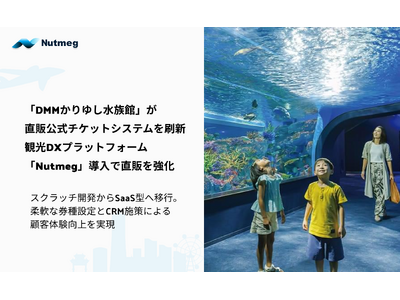NutmegLabs Japan株式会社(代表取締役:中口 貴志、本社:東京都千代田区、以下「当社」)が提供する、旅行・レジャーにおける現地体験事業者向け観光DXプラットフォーム「Nutmeg(ナツメグ)」が、合同会社DMM.com(会長兼CEO:亀山敬司、本社:東京都港区)が運営する「DMMかりゆし水族館」(沖縄県豊見城市)において、直販公式チケットの販売サイト構築ツールとして採用されたことをお知らせいたします。これにより、消費者一人ひとりのシーンに合わせた幅広い券種の取り扱いを可能にし、会員情報を活用したCRM施策強化を図ります。