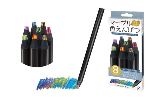 特徴:見てるだけでワクワクする♪いろんな色に変化するマーブル色鉛筆!8本セット!芯がマーブルでカラフルに描け、筆圧や角度によって色の出方や濃さが異なるので色々な見え方を楽しむことができます!表現の幅がグーンっと広がる♪お絵描きやお手紙に使ってね!