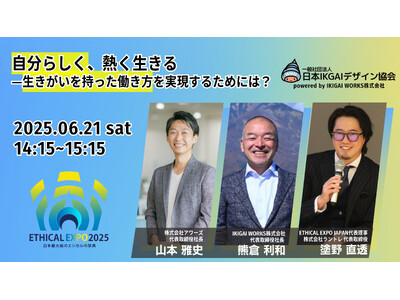 一般社団法人ETHICAL EXPO JAPAN(代表理事:塗野 直透)は、2025年6月21日(土) 、22日(日)にグランフロント大阪北館1階 ナレッジプラザにて、日本最大級のエシカルの祭典「エシカルエキスポ2025 OSAKA」を開催いたします。本イベントスポンサーである「一般社団法人日本IKIGAIデザイン協会」がプロデュースした、2つのトークセッションがステージにて行われます。