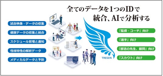株式会社トレセンでは、スポーツ分野での知見を活かし、「個の能力」を引き出す育成システムを構築しています。独自にカスタマイズした生成AIによる選手の育成・戦術の組み立てなど、テクニカルな分野のサポートの提供、またDX人材の育成指導を行い、実践の場で必要なスキルを身につけるスタイルを採用しています。