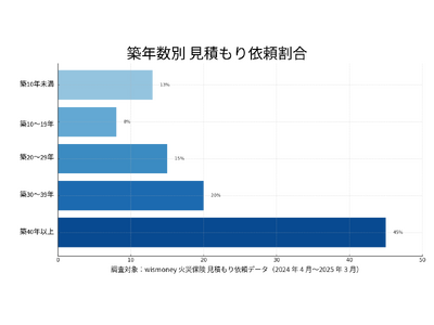Mt.flowers株式会社(本社:東京都江東区)が運営する火災保険一括見積もりサービス「wismoney(ウィズマネ)」は、2024年4月~2025年3月に寄せられた982件の見積もり依頼データをもとに、住宅の築年数と使用用途・構造に関する傾向を分析しました。