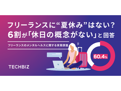 国内最大級のITフリーランス向けエージェント「TECHBIZ」をはじめとした、フリーランスと企業のマッチングサービスを運営する株式会社テックビズ(本社:東京都渋谷区、代表取締役:中島一樹、以下「テックビズ」)は、全国のフリーランスを本業とする男女500名を対象に「フリーランスのメンタルヘルスに関する実態調査」を実施いたしました。テックビズは「フリーランスがより主体的に働ける場と環境の提供」をミッションに掲げており、多様な働き方が注目され、即戦力として期待される中、フリーランスという就業形態特有の課題に注目しています。夏休みシーズンを迎えるこの時期の調査により、フリーランスにおける「休息」を取ることの課題と、心身の不調に対する適切なサポート体制の必要性が明らかになりました。