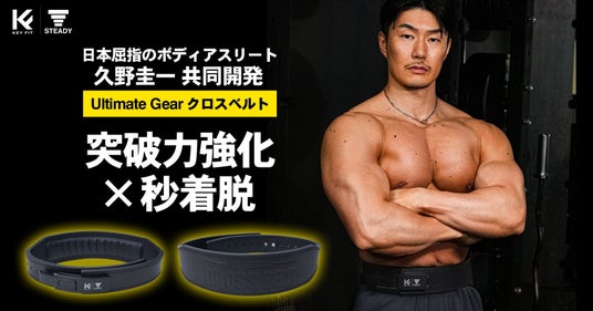 国内外で活躍するトップボディアスリートの久野圭一選手とSTEADYが、これまでの知見と叡智を結集して贈るUltimate Gearシリーズの第2弾となる「STEADY Ultimate Gear クロスベルト」が2025年6月18日(水)より発売。厚みと硬度の黄金比、動きを妨げない研鑽のくびれフォルムと高密着パッドにより、固定力と快適さを両立し、久野選手をもってして「ウエイトトレーニングはこれ1本で大丈夫!」と断言する自信作が誕生しました。
