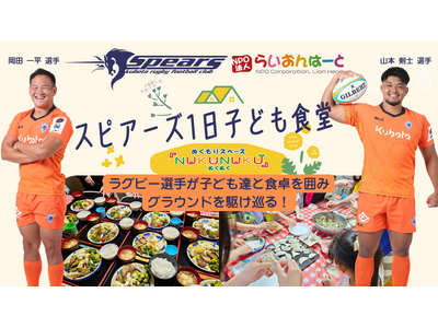 365日体験型子ども食堂『NUKUNUKU』を運営するNPO法人「らいおんはーと」が、ジャパンラグビーリーグワンのクボタスピアーズ船橋・東京ベイとコラボレーションし、体験型イベント「スピアーズ1日子ども食堂」を開催します。子ども達が憧れのラグビー選手と直接ふれあい、食とスポーツを通じて貴重な体験をすることで、教育格差や体験格差の解消を目指します。