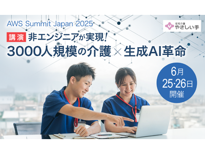 株式会社やさしい手(本社:東京都、代表取締役社長:香取 幹)は、6月25日(水)、26日(木)に開催されるAWS Summit Japan 2025において、「非エンジニアが実現!3000人規模の介護×生成AI革命」と題した講演を行います。