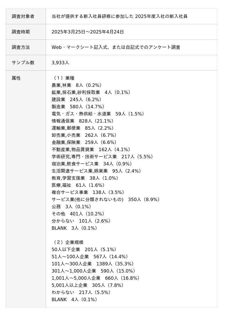 *本調査を引用される際は【ラーニングイノベーション総合研究所「新入社員意識調査2025(3933人の勤続意向編)」】と明記ください