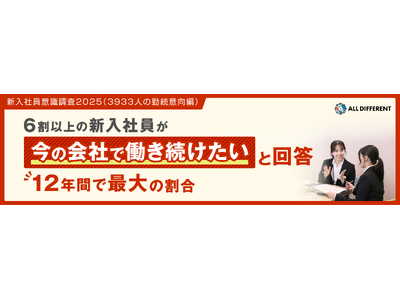 累計20,000社420万人以上の組織開発・人材育成を支援するALL DIFFERENT(オールディファレント)株式会社(所在地:東京都千代田区 代表取締役社長:眞崎大輔)および「人と組織の未来創り(R)」に関する調査・研究を行うラーニングイノベーション総合研究所(R)は、2025年3月25日~4月24日の期間で、2025年入社の新入社員 3,933人を対象に「新入社員意識調査」を行いました。本リリースでは、4月に入社式を迎えた新入社員の勤続意向に関する調査結果を公表いたします。