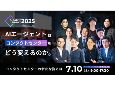 カスタマーサポートを自動化するAIエージェント「AIto(アイト)」や電話対応をゼロにする「DXでんわ」を提供するメディアリンク株式会社(本社:東京都港区、代表取締役:松本 淳志、以下 メディアリンク)は、2025年7月10日(木)9:00~17:30に『AI Agent Summit 2025』を開催することをお知らせいたします。