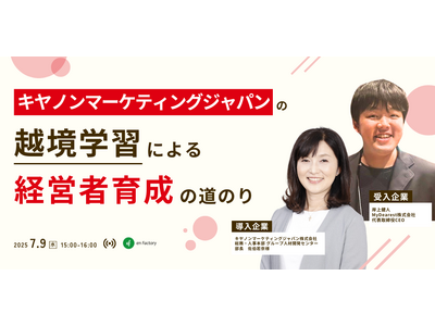 株式会社エンファクトリー(東京都千代田区、代表取締役社長CEO加藤健太)は、2025年7月9日(水)15:00-16:00にて、『キヤノンマーケティングジャパンの越境学習による経営者育成の道のり』セミナーを開催します。(詳細はこちら:https://form.k3r.jp/enfactory/20250709)