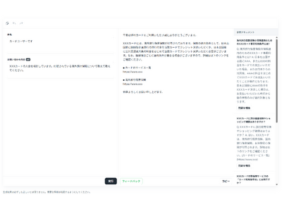 本取り組みは、三井住友カードのコンタクトセンターに寄せられるお問い合わせに対し、ELYZAが提供する検索拡張生成(RAG)(※1)技術を活用して社内データを検索(探索AI)し、回答の草案を自動で生成(回答生成AI)するものです。2024年6月末より三井住友カードが運営するコンタクトセンターのメール回答業務から利用を開始いただいておりました。(※2)
