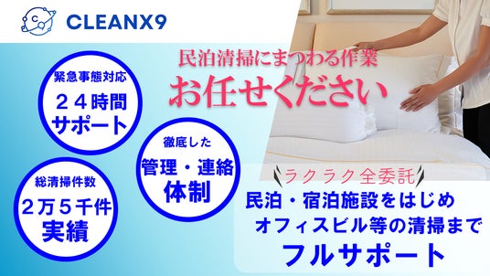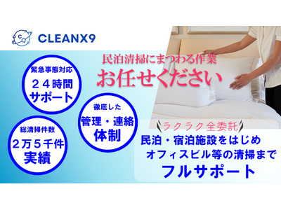 「CLEANX9」は、民泊・一棟貸し物件など、全国25拠点以上で宿泊施設に特化した清掃代行サービスを展開してきました。