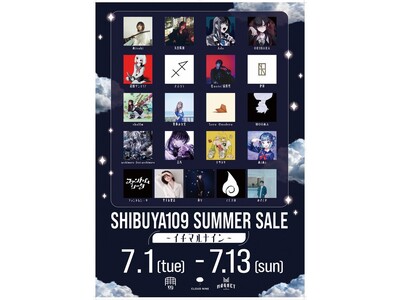 株式会社SHIBUYA109エンタテイメント(本社:東京都渋谷区、代表取締役社長:石川あゆみ)と、Adoなどインターネット出身のアーティストを多くマネージメントする株式会社クラウドナイン(本社:東京都新宿区、代表取締役社長:千木良卓也)は東京・渋谷の「SHIBUYA109渋谷店」「MAGNET by SHIBUYA109」、及び「SHIBUYA109阿倍野店」(大阪府大阪市)にて、7月1日(火)~7月13日(日)まで開催する夏セール『SHIBUYA109 SUMMER SALE ~イチマルナイン~』でコラボレーションすることが決定。