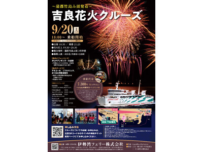 愛知県田原市と三重県鳥羽市を運航する伊勢湾フェリー株式会社(本社:鳥羽市)では、西尾市吉良町で開催される第35回吉良花火大会において、昨年大好評につき、本年も蒲郡市竹島埠頭発着の花火観覧クルーズを運航いたします。