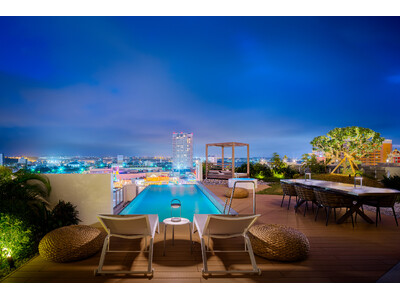今回のリニューアルは、「ホテル業界初」「沖縄最大級」「唯一無二」の体験を追求し、開放的なスイートルームに、美容と快眠をサポートする設備やアイテムを融合し、お客様が選ぶ楽しさをプラスしました。メゾネットタイプで広さは373.3平方メートル (テラス含む)、定員は最大7名。最上階7階に位置し、プライベートプールとバレルサウナ、ジャグジーや広々としたテラスが非日常の贅沢なひとときを演出します。「使いやすさと美しさの両立」をテーマに、各種設備を細部までこだわり抜いて選定しました。