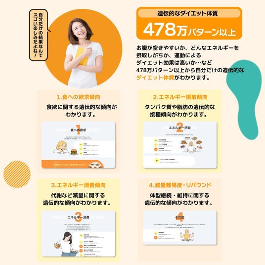 今回の調査結果に基づき、より多くの方に遺伝子に基づいたダイエットのヒントを届けるべく、この度ダイエット遺伝子検査の特設サイトを開設しました。
