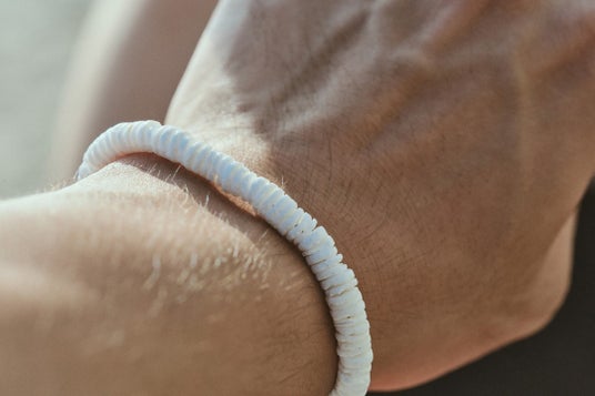 波に磨かれた白い貝殻から削り出されたこのビーズには、