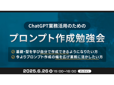 さらに、参加者には業務改善が加速する【プロンプトテーマ50選】をプレゼントします。本勉強会を起点にChatGPTのビジネス活用を加速させ、事業成長・業務改革を推進していっていただけることを目的にしています。