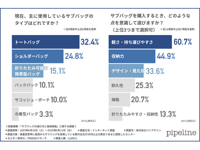 株式会社パイプライン(所在地:東京都中央区、代表取締役:石黒 文浩)は、普段からサブバッグを使用している都内在住の30代以上の男女を対象に、「サブバッグの選び方と価値意識」に関する調査を実施しました。