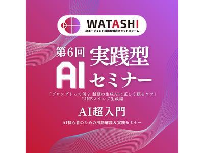 AI教育プラットフォーム「WATASHI」の第6回AIオンラインセミナーを2025年6月29日に開催を決定しました。