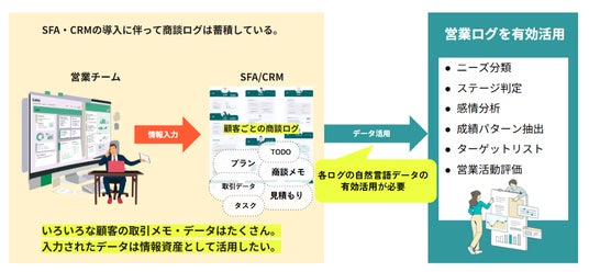 営業ログを自然言語処理によって分析し、ナレッジの資産化と再利用性の向上を図ることで、