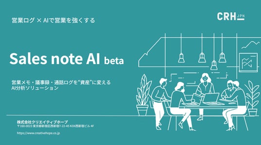 株式会社クリエイティブホープ(代表取締役:藤井 廣男)は、営業メモや議事録、通話ログといった営業データをAIで分析し、ナレッジの共有と蓄積を支援するAI分析ソリューション