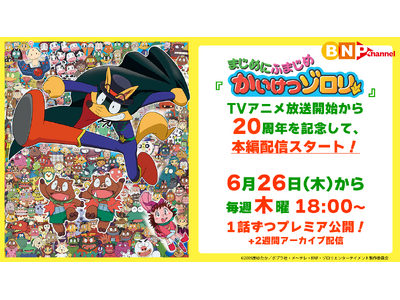株式会社バンダイナムコピクチャーズ(本社:東京都杉並区、代表取締役社長:佐藤弘幸)は、2005年からのTVアニメ『まじめにふまじめ かいけつゾロリ』放送開始20周年を記念し、公式YouTubeチャンネル「BN Picturesチャンネル」にて、期間限定無料配信いたします。6月26日(木)より全97話を毎週木曜日18時から1話ずつプレミア公開、さらに2週間アーカイブ配信いたします。
