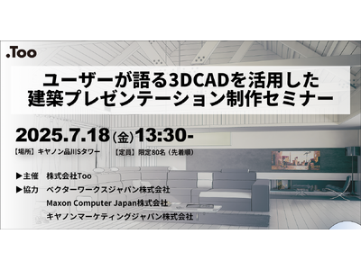 クリエイティブ市場の総合商社・株式会社Too(本社/東京都港区虎ノ門3-4-7、社長/石井剛太、以下Too)は、「ユーザーが語る3DCADを活用した建築プレゼンテーション制作セミナー」を2025年7月18日(金)に開催します。