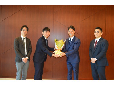 (写真左より)NYC アソシエイト 加藤 康介、NYC 代表取締役社長 中塚 庸仁、グローバルリソースマネジメント 代表取締役 山田 貴大 氏、NYC ヴァイスプレジデント 梅本 弘祐