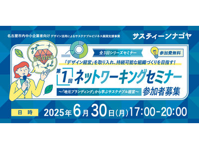 サスティーンナゴヤ ネットワーキングセミナーは、サステナブル経営への関心深化・デザイン経営の理解・交流を目的とした全3回のシリーズセミナーです。第1回は「地元ブランディング」をテーマに掘り下げます。