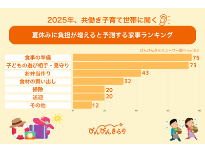 この結果は、子育て家庭が夏休みを前に、日中の子どものケアとそれに伴う食事の準備に特に大きな不安を感じている現状を示しています。