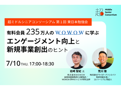 2025年6月6日に発足した、企業の枠組みを超えた共創を目指す共同体「超ミドルシニアコンソーシアム」。同コンソーシアム初となる勉強会を、プレゼンテーターに株式会社WOWOW様をお迎えして2025年7月10日(木)に開催いたします。