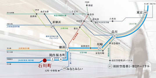 1. JR京浜東北・根岸線「石川町」駅徒歩5分。横浜駅へ直通7分の利便性の高い立地