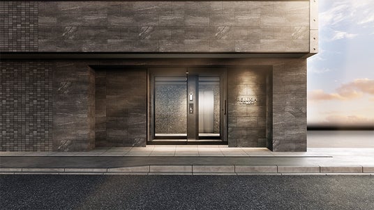 モノトーンの色合いと表情の異なる石目調のタイルを組み合わせ、重厚かつ上品な建物の表情を創り出した外観デザインは、個性あふれるモダンアートのような造形美と佇まい。エントランスは、シックな色合いのフロアや壁材、優雅な石目調タイルが上品な空間を演出し、洗練された美しさで包み込みます。