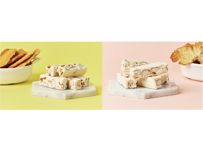 シンプルなミルク味のヌガーとミルクティー味のヌガーをサクサクのクラッカーで挟んだ、ミルクヌガークラッカーとミルクティーヌガークラッカー。ヌガーの柔らかさとクラッカーのサクサクの食感のハーモニーが楽しめる逸品です。