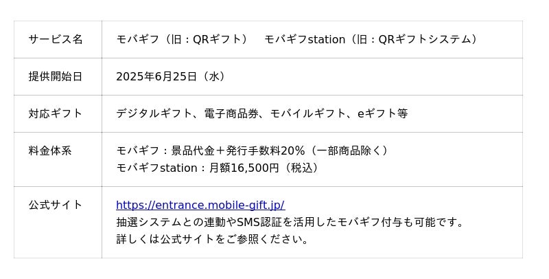 合わせましてデジタルギフト発行システム「QRギフトシステム」を『モバギフstation』へブランドリニューアルいたします。
