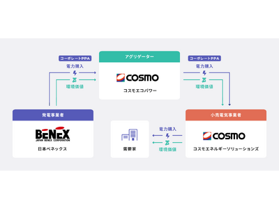 コスモエネルギーホールディングス株式会社(代表取締役社長:山田 茂)のグループ会社であるコスモエコパワー株式会社(代表取締役社長:野倉 史章、以下「コスモエコパワー」)と、株式会社日本ベネックス(代表取締役社長:小林 洋平、以下「日本ベネックス」)は、FIP※1屋根設置太陽光発電所を対象としたフィジカルPPA(以下「本契約」)※2を締結したことをお知らせします。この取り組みは、コスモエコパワーが提供するアグリゲーションサービスを活用したものです。物流施設などの屋根を有効利用して設置された分散型電源を束ねて運用することで、再生可能エネルギー電力のさらなる活用を支援します。