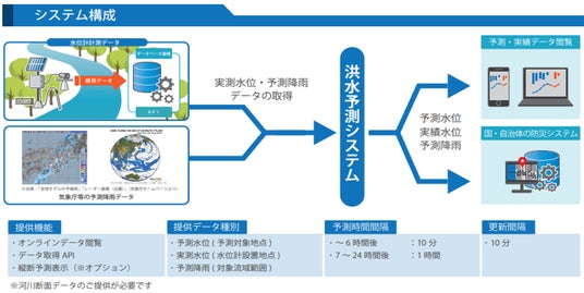Hydro-Floodは、AIモデルと物理モデルを融合し、それぞれのモデルのメリットを生かしたハイブリッド洪水予測システムです。最大24時間先まで、河川の予測水位をリアルタイムに提供します。物理モデルの特徴を生かし、過去のデータが少ない地点やAIモデルが苦手とする未経験規模の洪水にも適切な予測が可能です。一方で、過去のデータを蓄積することで物理モデルでは考慮が難しい複雑な地点でも高精度な予測水位を提供します。支川と本川の両方の水位を予測することでバックウォーターの影響を加味した水位予測モデルも提供します。