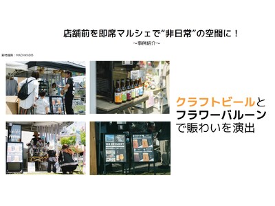 即席マルシェとしてクラフトビール販売ブースやフラワーバルーンを活用した装飾を組み合わせ、お店の前を“イベント空間”として演出することで、集客と話題性を同時に生み出すことができる、実用的かつ印象的な販促支援です。