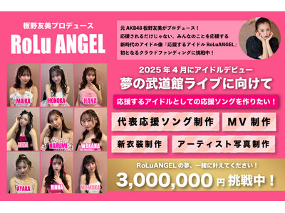 元AKB48、板野友美がプロデュースする9人組アイドルグループ「RoLuANGEL(ロールエンジェル)」は、グループ初となるクラウドファンディングを本日2025年6月25日(水)18:00よりスタートいたしました。