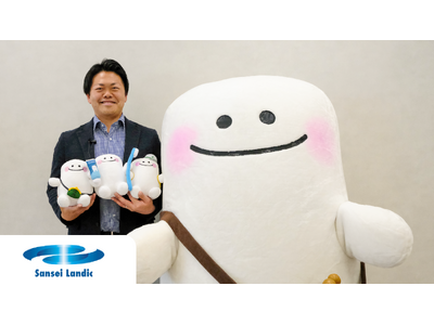 (写真)左から 株式会社サンセイランディック 営業第三部 部長 山崎 翔一氏、マスコットキャラクター 「底地くん」
