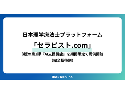 株式会社バックテック(代表取締役 CEO/理学療法士:福谷直人、以下「バックテック」)は日本理学療法士プラットフォーム 「セラピスト.com」 の一部機能をβ版として公開し、その第一弾として AI支援機能 を2025年6月26日(木)より完全招待制でリリースいたします(7月25日まで公開予定)。