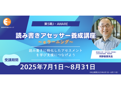 認定NPO法人エッジ(東京都港区 会長:藤堂栄子)は、読み書き困難の検査法を習得して、評価とヒアリングから効果的な支援や学び方を提案できる人材を養成する【読み書きアセッサー養成講座(eラーニング)】第5期生(7~8月)を募集します。
